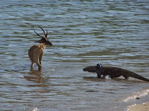 Der Komodowaran ist die grösste zurzeit lebende Echse der Welt. Sie ist bis zu 3,1 Meter lang und bis zu 166 Kilogramm schwer. Komodowarane werden 25-40 Jahre alt.