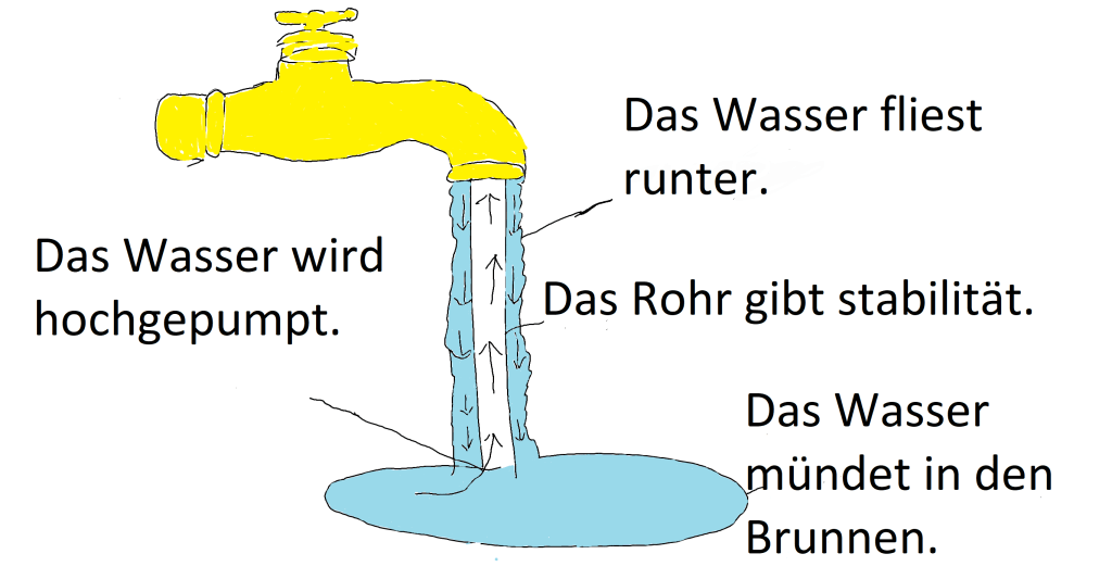 Bei diesem Bild wird unser Gehirn auch ausgetrickst. Es sieht nämlich so aus ,als ob der Wasserhahn fliegen würde. Doch die Illusion ist ganz simpel! Im Wasser strahl ist ein Rohr integriert, dass das herabgeflossene Wasser nach oben pumpt, so dass es rundum des Rohrs so aussieht, als wäre da nur ganz normales Wasser.